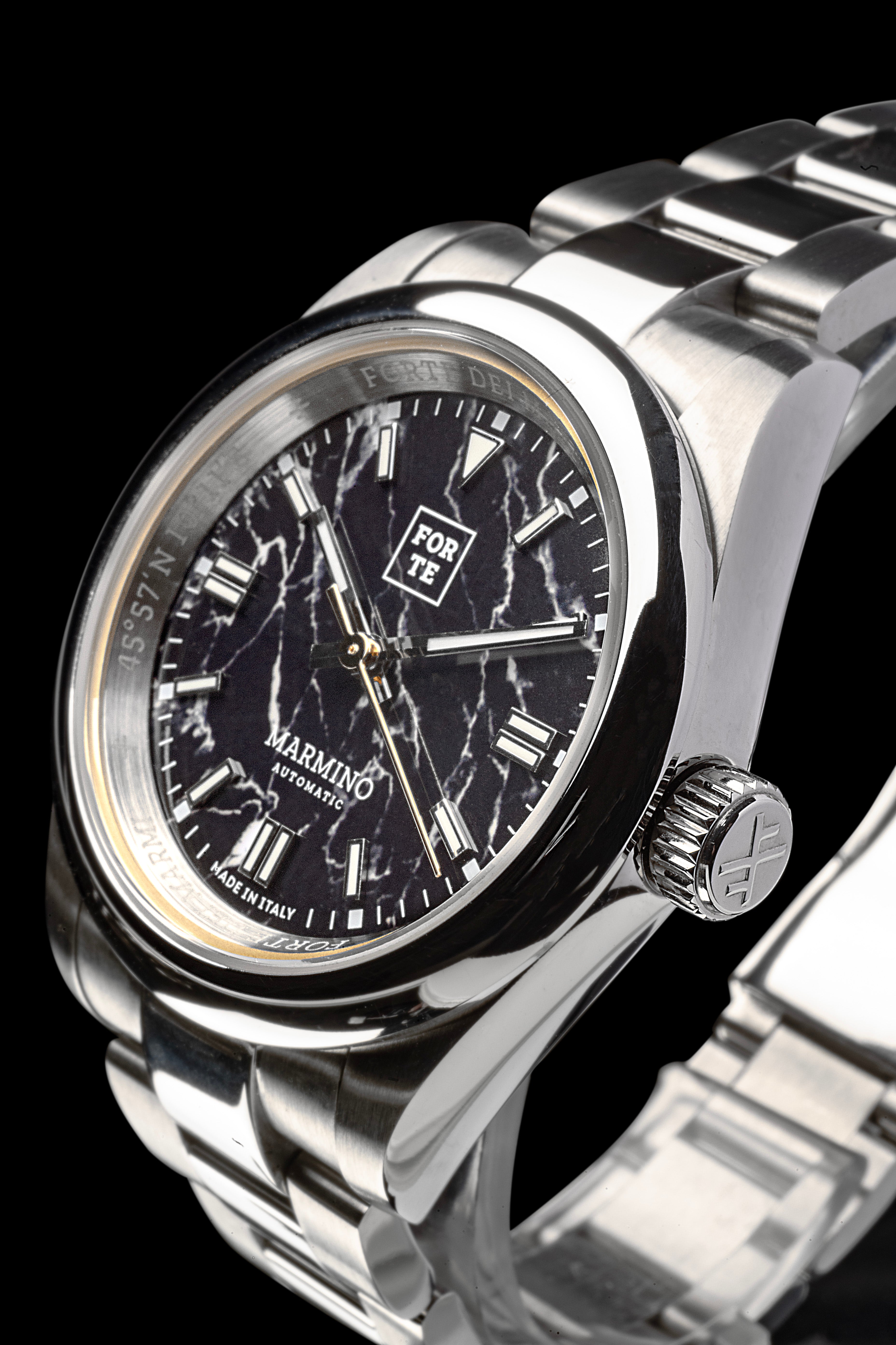 Scopri Marmino di FOR TE, l’orologio automatico dal design elegante e dettagli unici. Movimento Seiko NH35 con 24 rubini e 62 ore di riserva di carica. Impermeabile fino a 5 ATM, con vetro zaffiro antiriflesso e cassa in acciaio 316L da 39mm. Qualità Made in Italy con incisioni esclusive e packaging eco-friendly. Garanzia di 2 anni inclusa.
